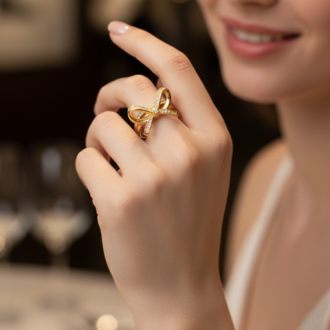 Sandhyora Demifine Gold Bow knot Ring