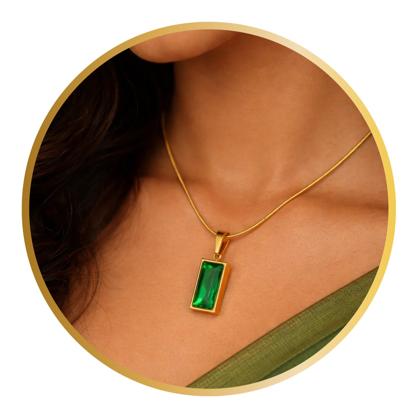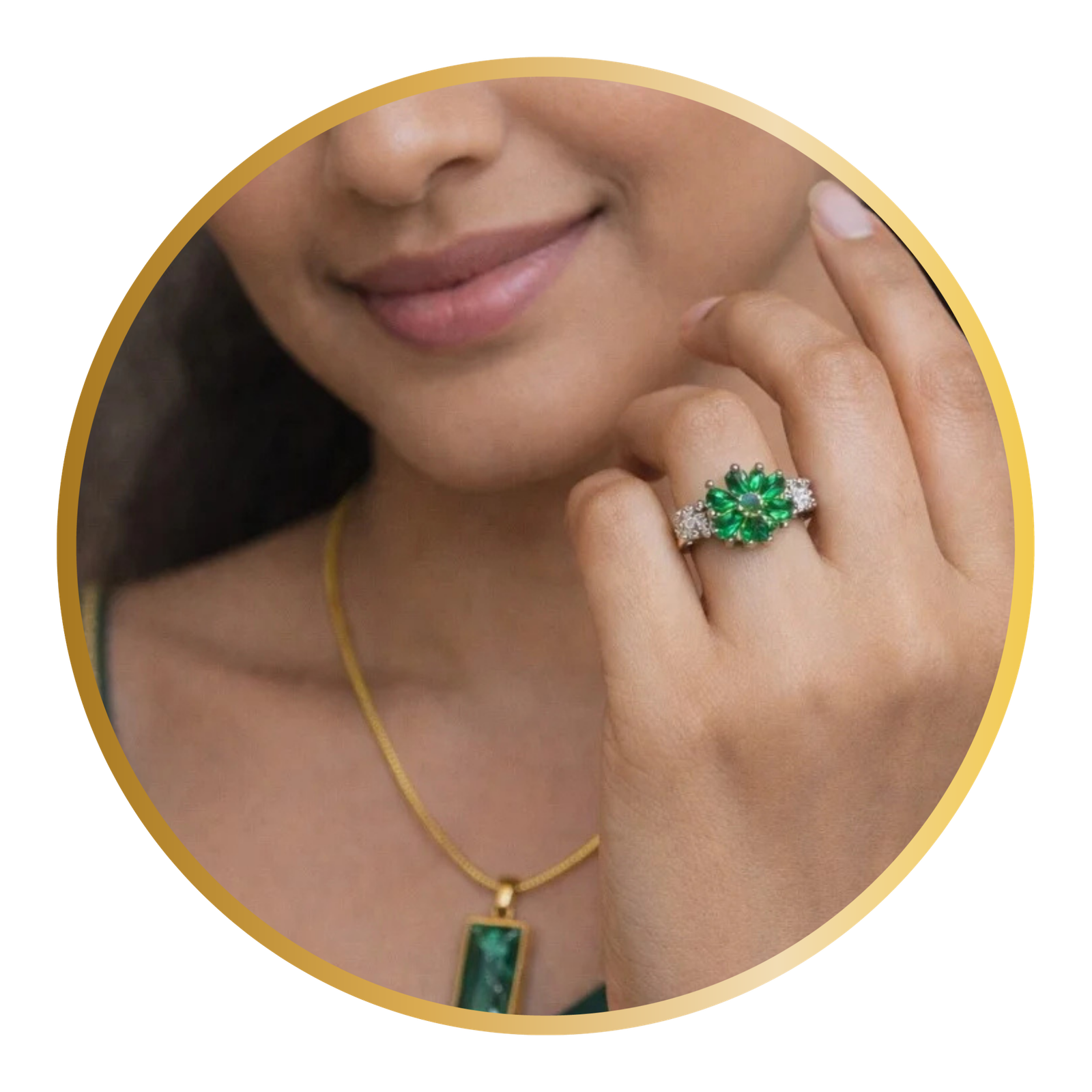 I purchased the emerald chain, pendant, and ring set from Sandhyora, and it looks absolutely royal. The emerald color is vibrant and eye-catching, and the finish is very elegant. The chain sits perfectly on the neck and the ring fits comfortably.