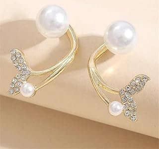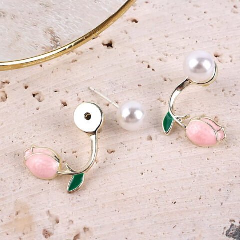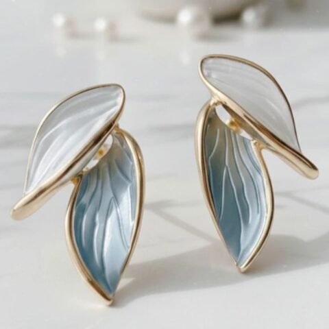 Korean Earrning White Blue Leaf